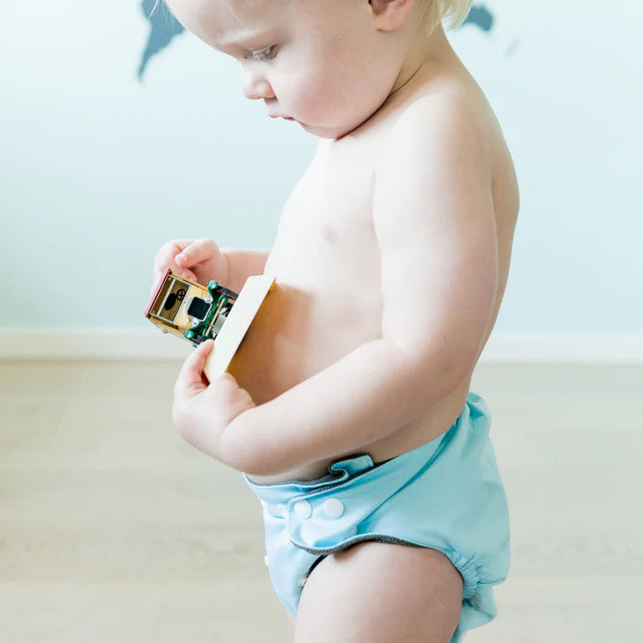 Little Genie Reusable Viscose from Bamboo Charcoal Pocket Nappy is a one-size-fit-most thanks to the elastic waist and adjustable buttons. The outside is made from 100% waterproof PUL. The Reusable Nappy comes with 1 Bamboo Charcoal Insert Booster. You might need to pop in a few more boosters, these are sold in packs of three for extra support.
